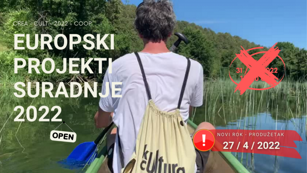 Europska komisija ponovno je produljila rok za predaju projektnih prijedloga za poziv za europske projekte suradnji. Novi službeni rok je 5. svibnja 2022. godine u 17:00 CET. Cilj Poziva je osigurati bolji pristup europskoj kulturi i umjetničkim djelima te promicati inovacije i kreativnost: Transnacionalno stvaralaštvo i cirkulacija: jačanje transnacionalne suradnje i prekogranične dimenzije stvaranja, cirkulacije […]